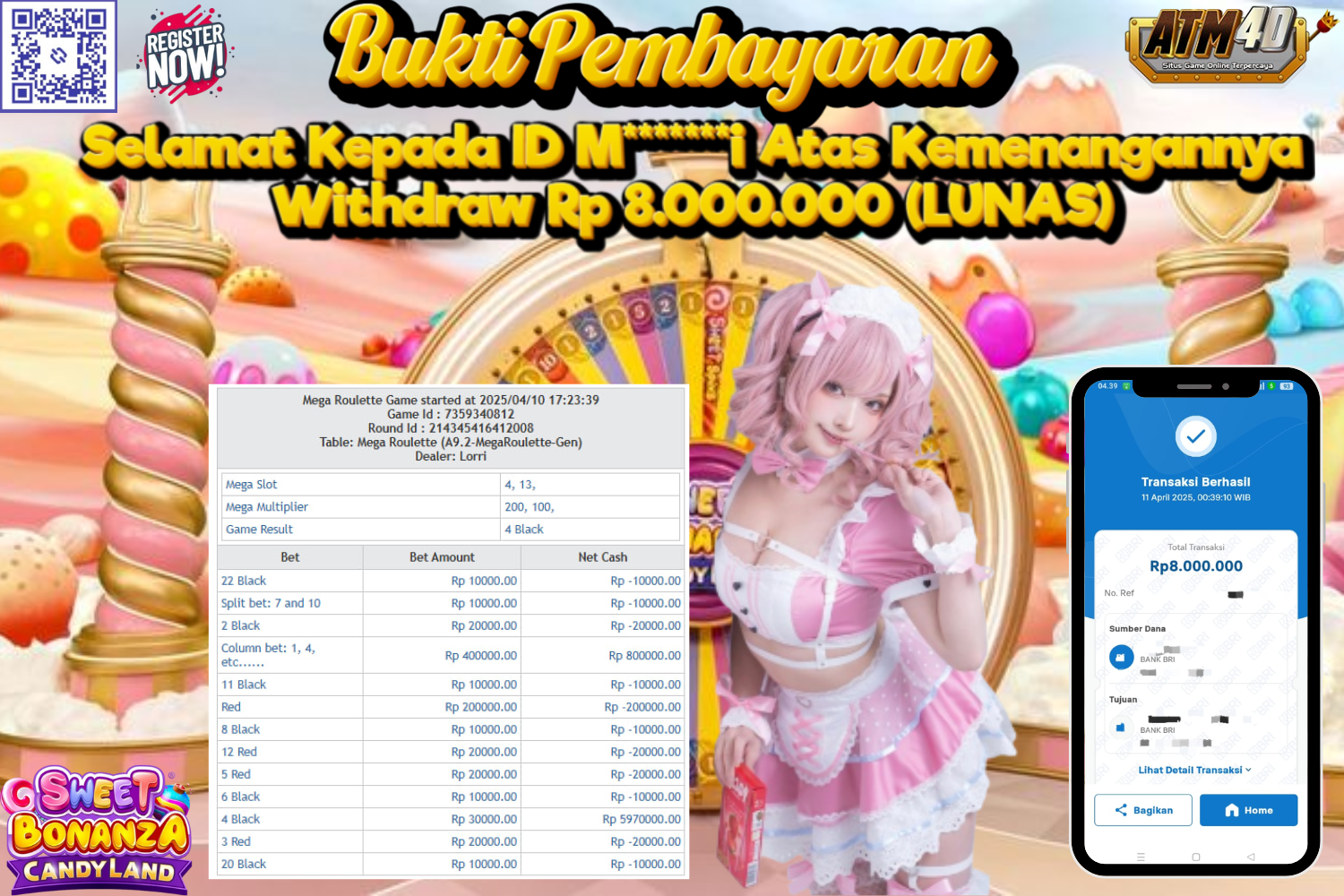 Selamat Kepada Member Yang Berhasil Mendapatkan Jackpot Dipermainan PRAGMATIC LIVE, Berikut Bukti Jackpot Member Di Situs ATM4D