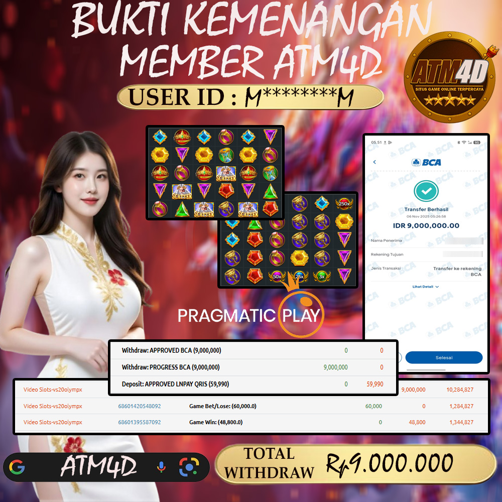 Selamat Kepada Member Yang Berhasil Mendapatkan Jackpot Dipermainan PRAGMATIC PLAY, Berikut Bukti Jackpot Member Di Situs ATM4D