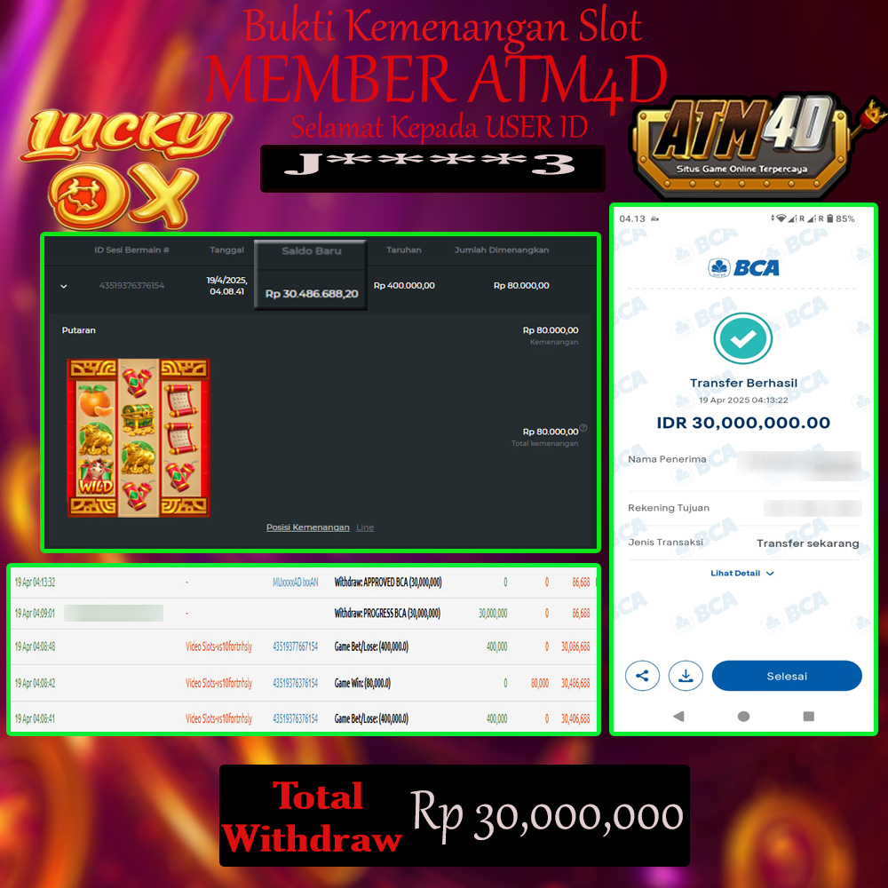 JACKPOT SLOT LUCKY OX 19 APRIL 2025, Bukti Kemenangan PRAGMATIC PLAY Menang Platform online, Situs Aman Tergacor dan Aman, Withdraw Berapapun Pasti Di Bayar Langsung, Maxwin Slot Online.