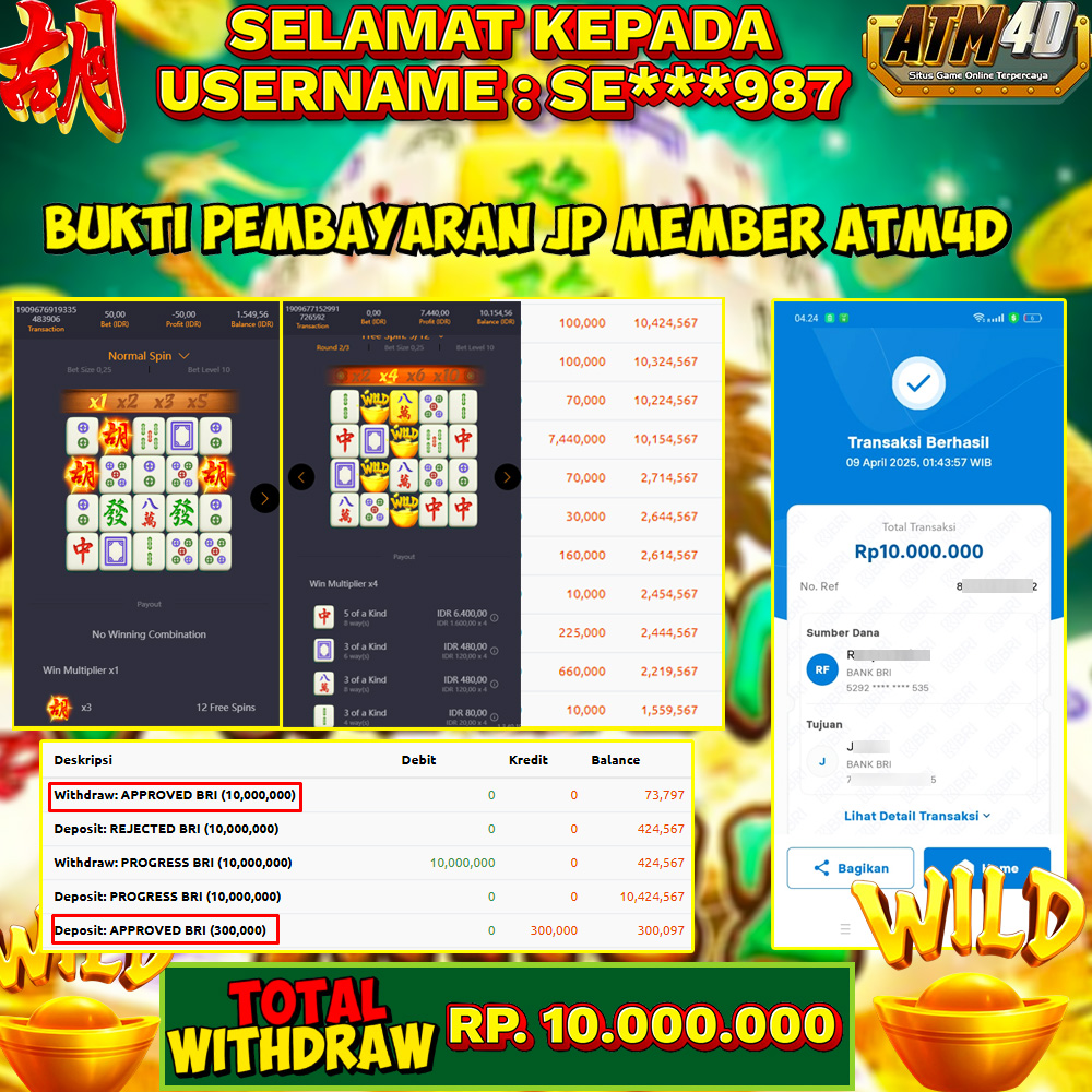 ATM4D – JACKPOT SLOT MAHJONG WAYS 09 APRIL 2025, Bukti Kemenangan PG SOFT, Menang Platform online, Situs Aman Tergacor dan Aman, Withdraw Berapapun Pasti Di Bayar Langsung, Maxwin Slot Online.