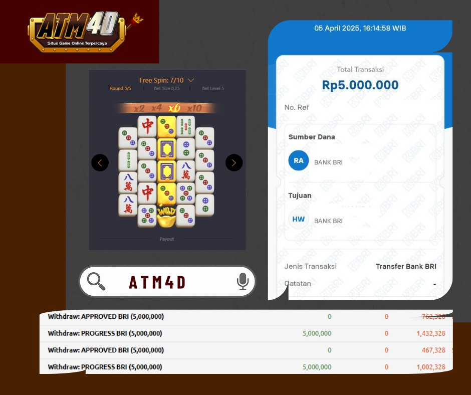 ATM4D – JACKPOT SLOT MAHJONG WAYS 2 05 APRIL 2025, Bukti Kemenangan , Kemenangan Pg Soft, Menang Platform online, Situs Aman Tergacor dan Aman, Withdraw Berapapun Pasti Di Bayar Langsung, Maxwin Slot Online.