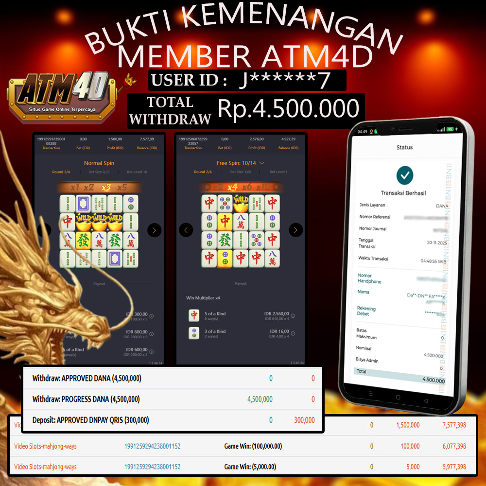 Jangan lewatkan kesempatan untuk meraih kemenangan besar. Daftar sekarang di ATM4D dan rasakan pengalaman bermain slot terbaik yang pernah ada! Putar gulungan, menangkan jackpot, dan jadilah bagian dari komunitas pemain sukses kami!