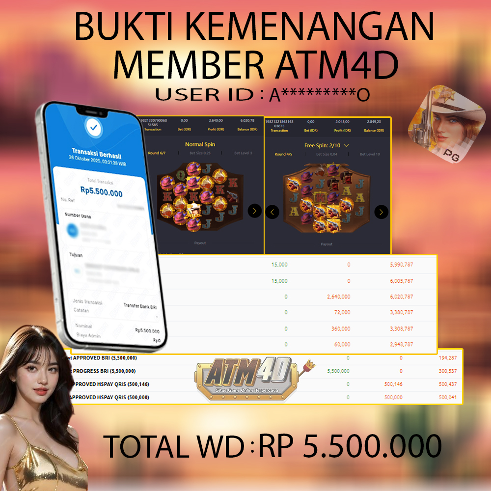 Jangan lewatkan kesempatan untuk meraih kemenangan besar. Daftar sekarang di ATM4D dan rasakan pengalaman bermain slot terbaik yang pernah ada! Putar gulungan, menangkan jackpot, dan jadilah bagian dari komunitas pemain sukses kami!